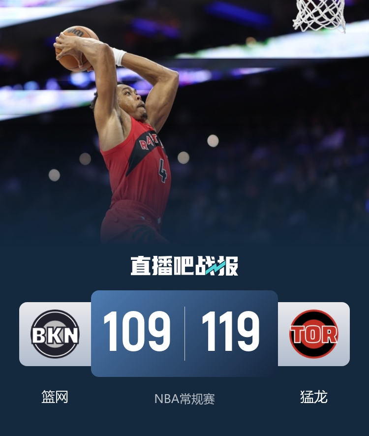 猛龙8人上双轻取篮网迎7连胜 巴雷特伤退 小波特25+6