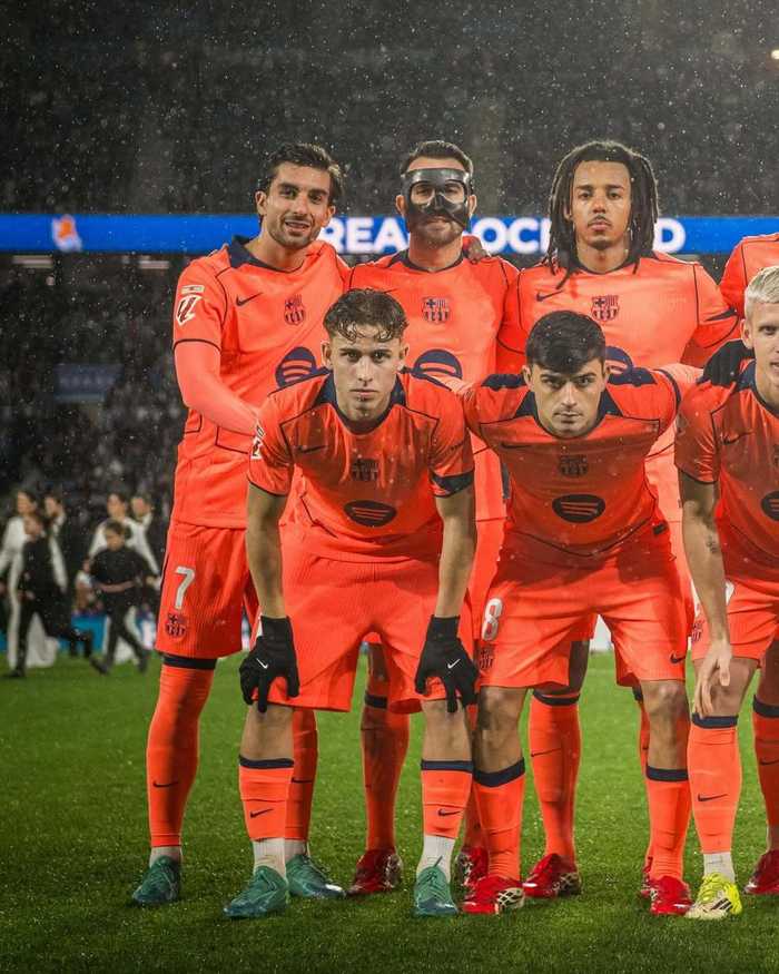 皇家社会2比1巴萨,西甲联赛巴萨首发11人合影
