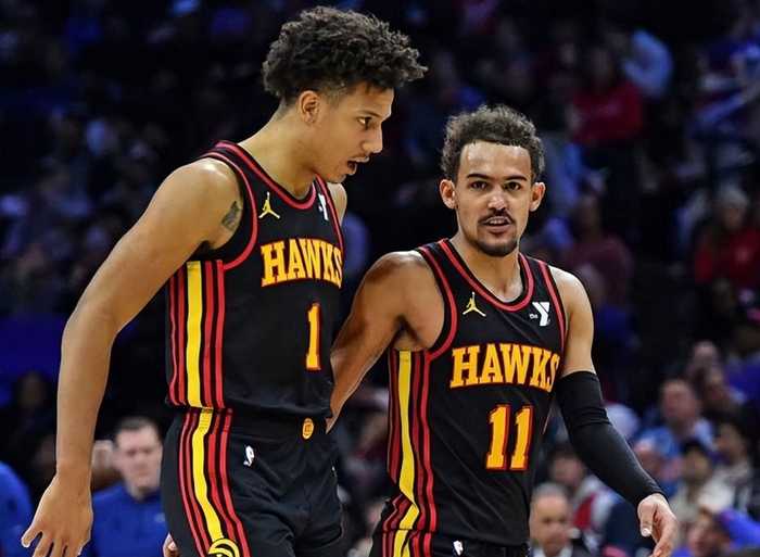 特雷杨本赛季出战10场,老鹰战绩仅为2胜8负,胜率仅为20%;特雷杨缺席的29场比赛,老鹰战绩为16胜13负,胜率高达55.2%。在这个过程中,老鹰队的年轻人们敢打敢拼,人人为我我为人人,比特雷杨的持球大核打法香多了!尤其是杰伦约翰逊,打出了新鹰王的名号,频频制造惊喜!比如打爵士,杰伦约翰逊豪取31分+18篮板+14助攻,篮板数创生涯新高;打76人,杰伦约翰逊爆砍41分+14篮板+7助攻;打掘金,杰伦约翰逊狂轰21分+18篮板+16助攻,助攻数创生涯新高;打黄蜂,杰伦约翰逊又豪取43分+11篮板+9助攻,得分创生涯新高。